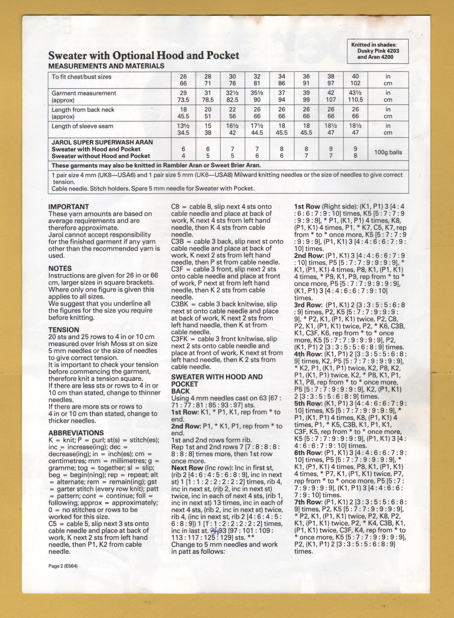 Tags: Jarol, Superwash, Aran, 26-40", No.E564, Sweater, Hood, Pocket:Knitting Pattern