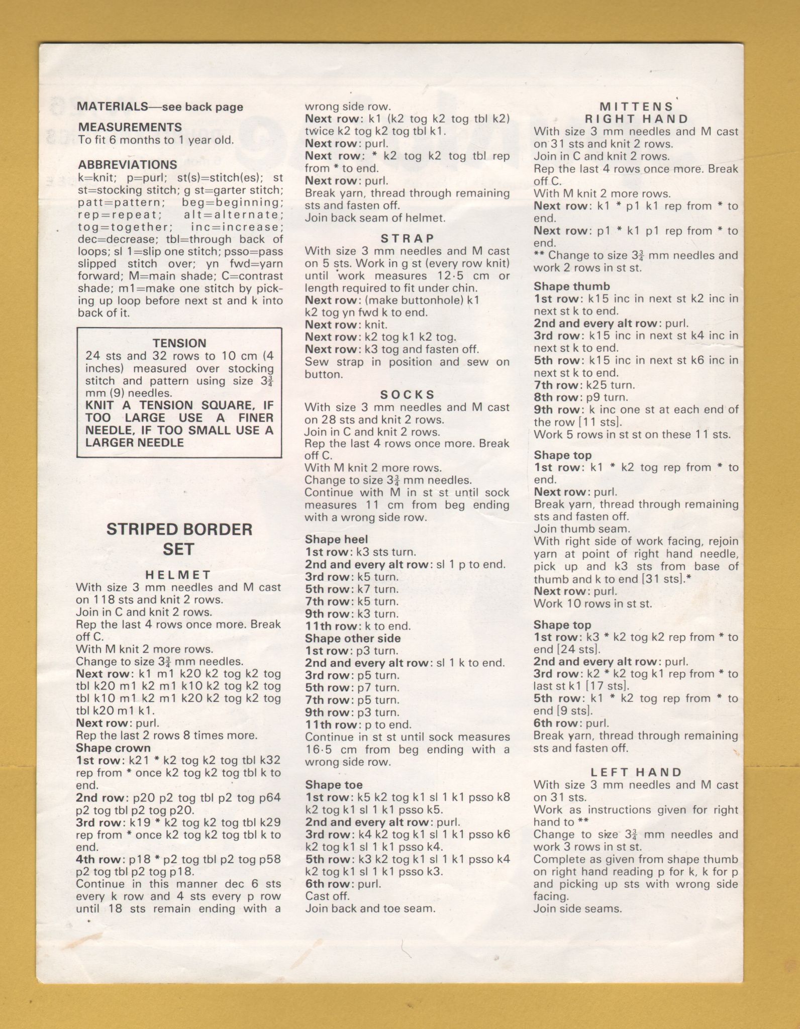 4 page Knitting Pattern instructions.