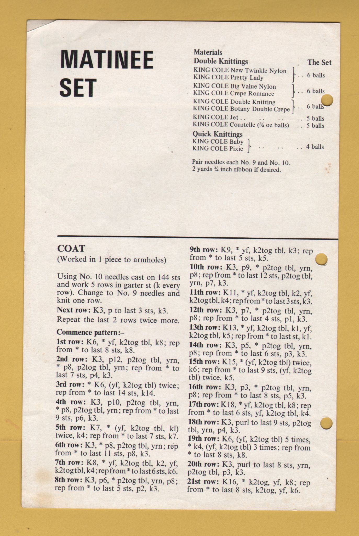 Harmony - Baby Knittings - Birth to 9 Months - Design No.140 - Matinee Set - Knitting Pattern
