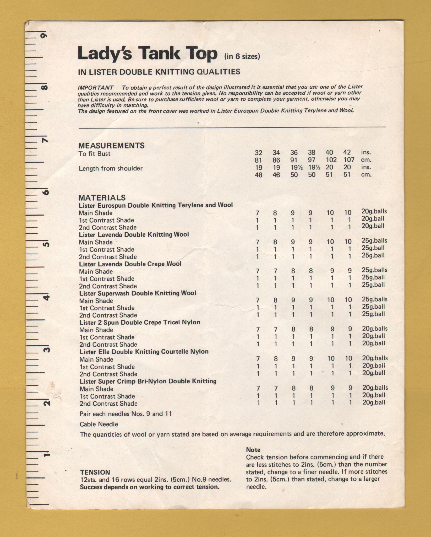 Tags: Lister, Double Knitting, 32-42", No.N2533, Lady`s Tank Top:Knitting Pattern
