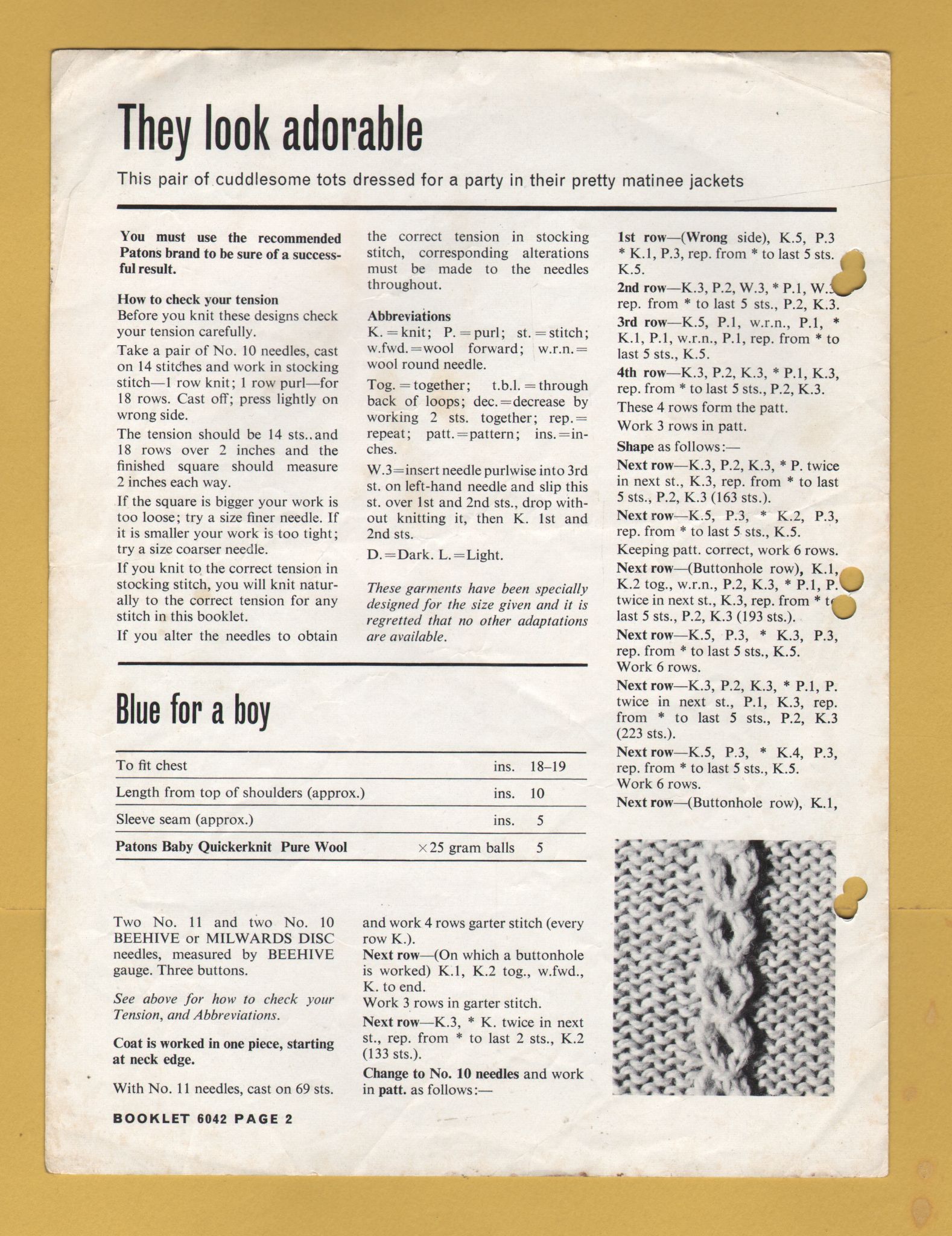 Tags: Patons, Baby Quickerknit, 18-19", No.6042, Matinee Jackets:Knitting Pattern