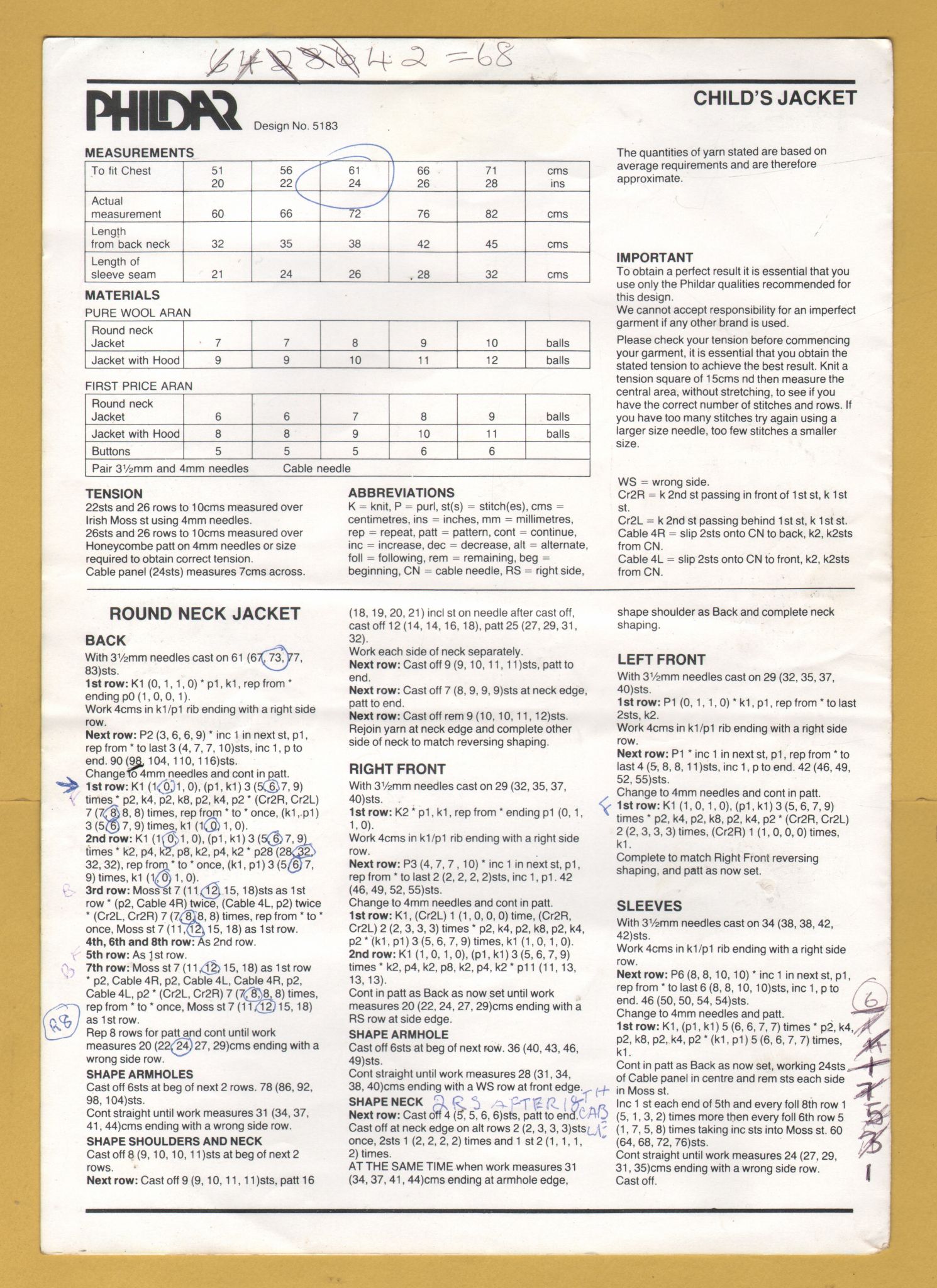 Tags: Phildar, Aran Knitting, 51-71", No.5183, Child`s Jacket:Knitting Pattern
