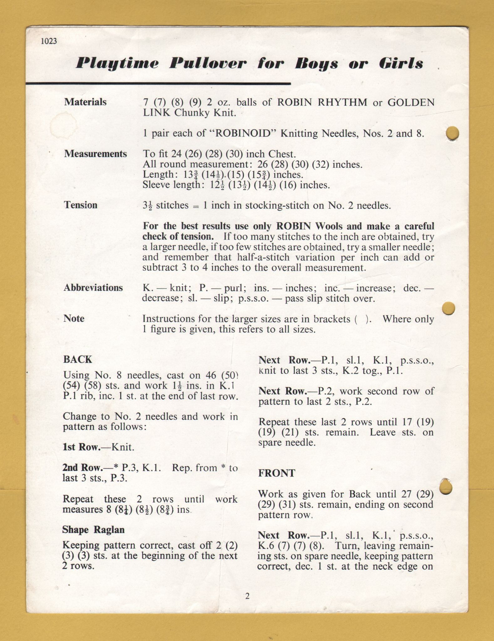Tags: Robin, Chunky, 24-30", No.1023, Boys, Girls, Pullover:Knitting Pattern