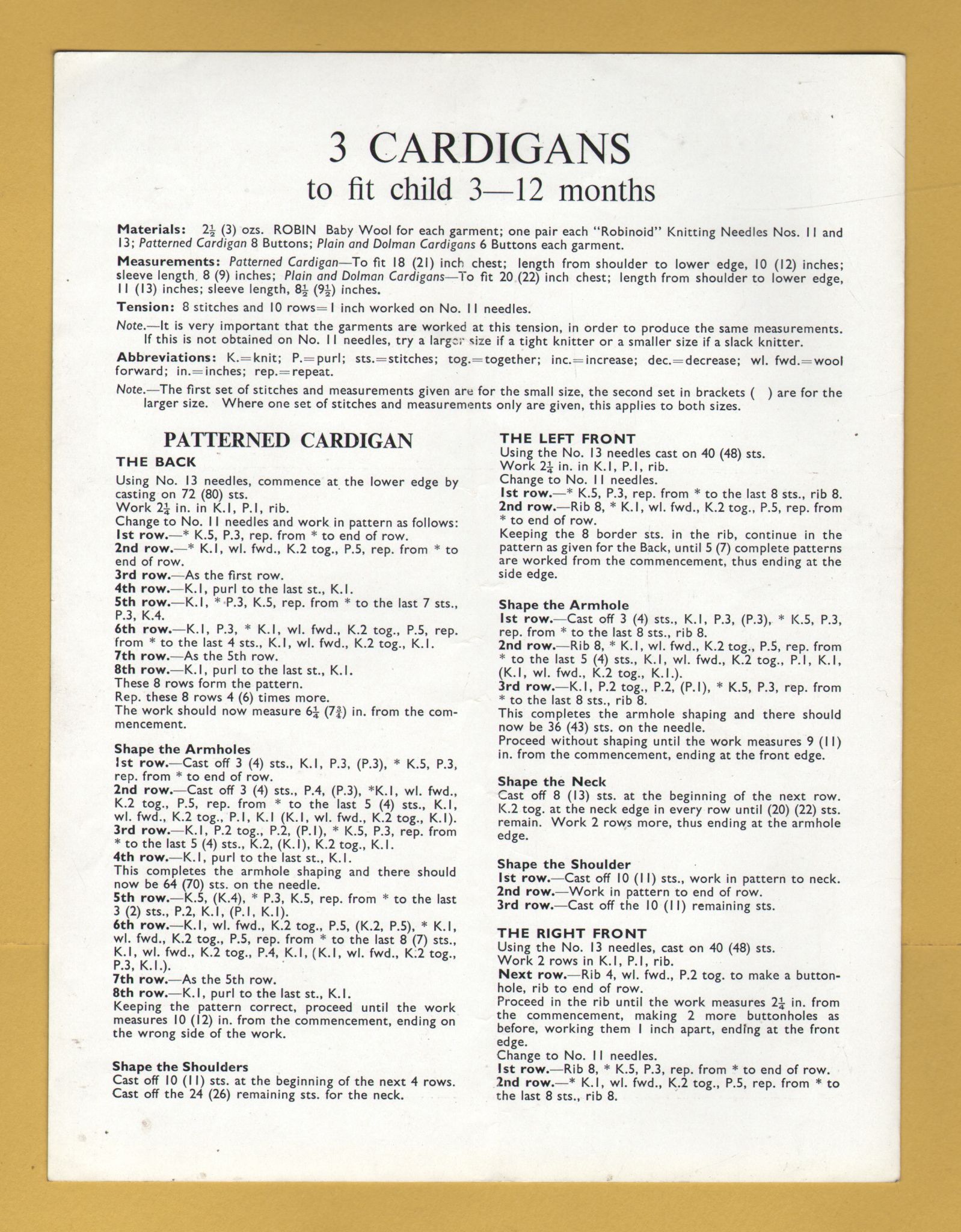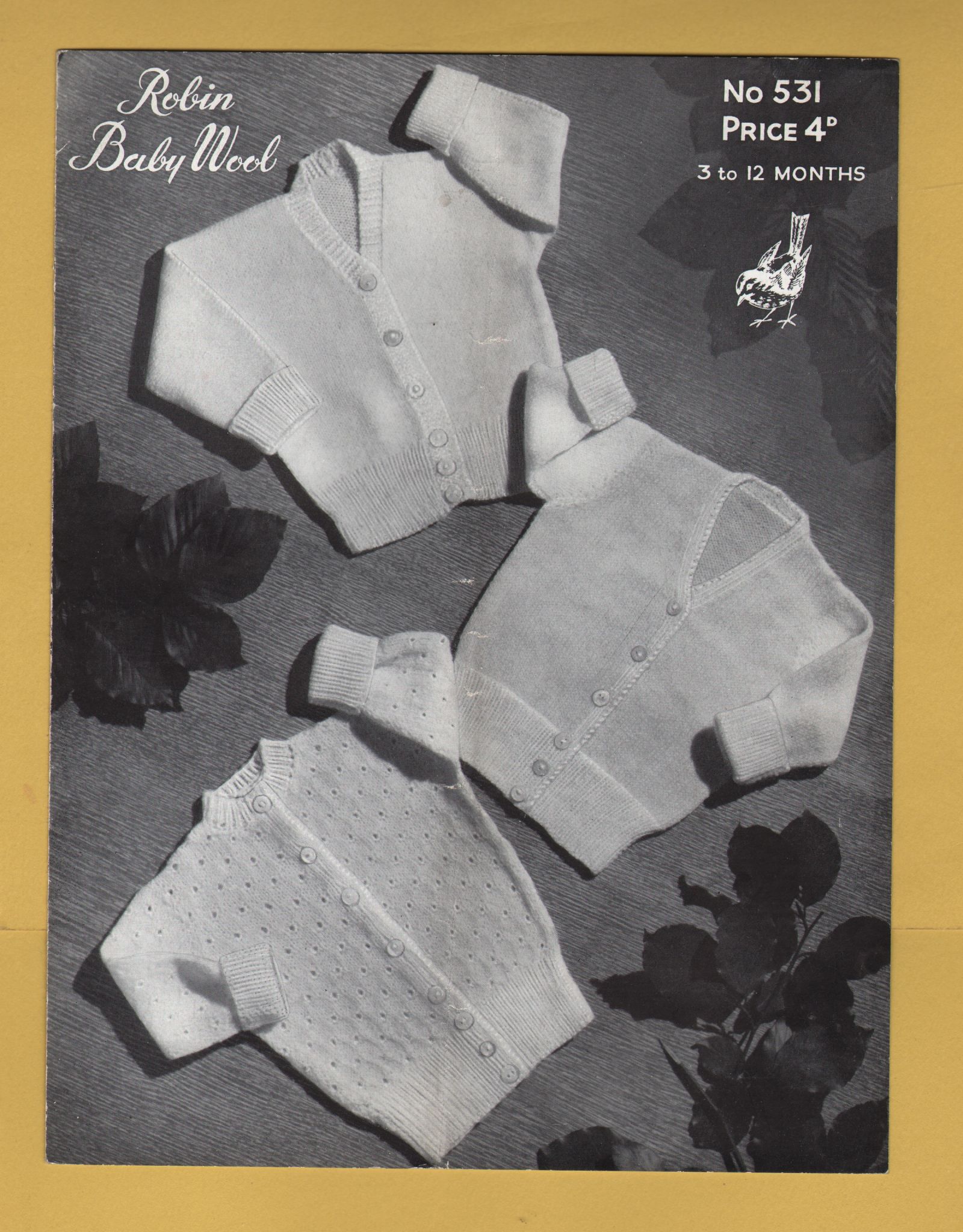 Tags: Robin, Baby Wool, 3 to 12 Months, No.531, Cardigans:Knitting Pattern