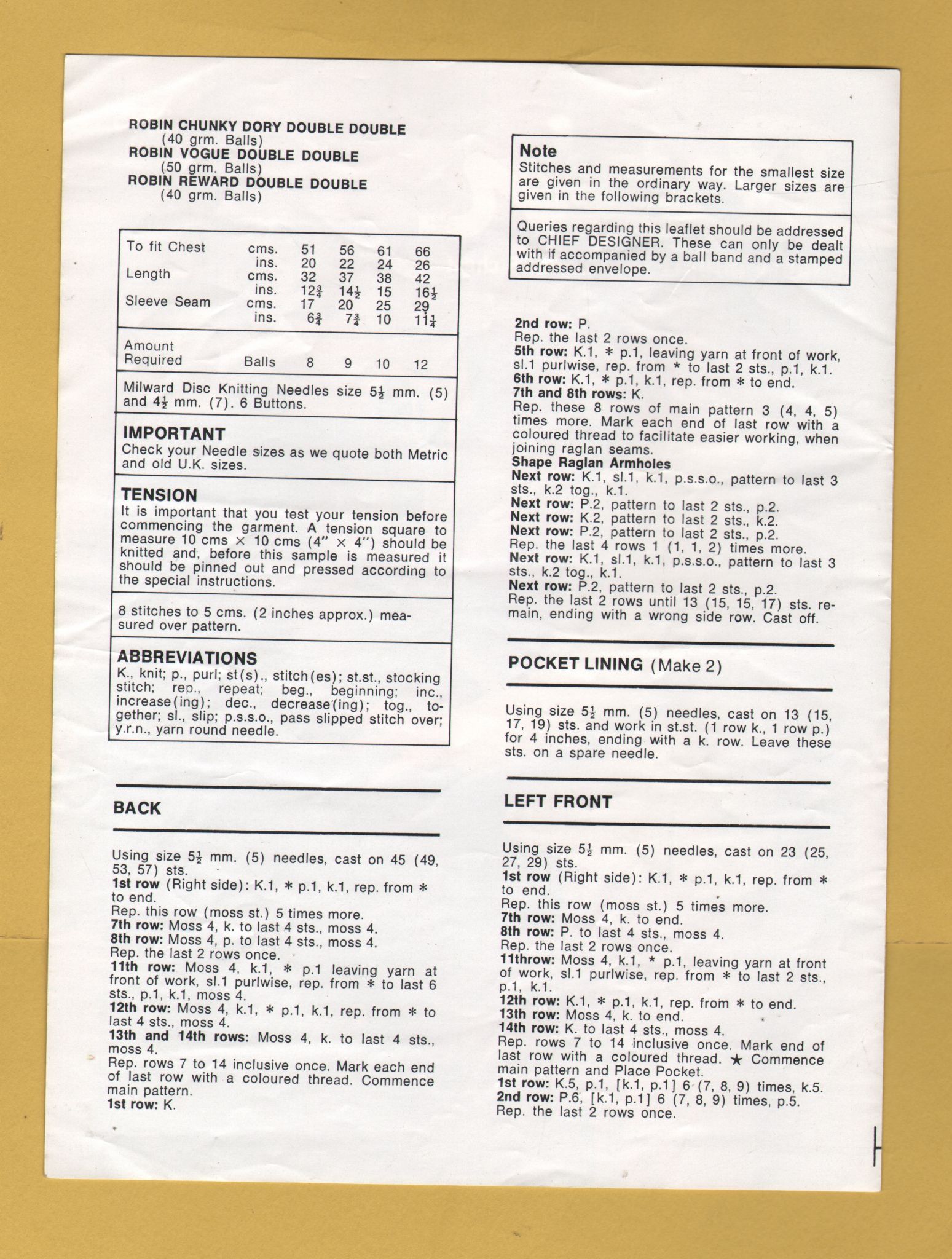 Tags: Robin, Double Knitting, 20-26", No.2775, Jacket:Knitting Pattern
