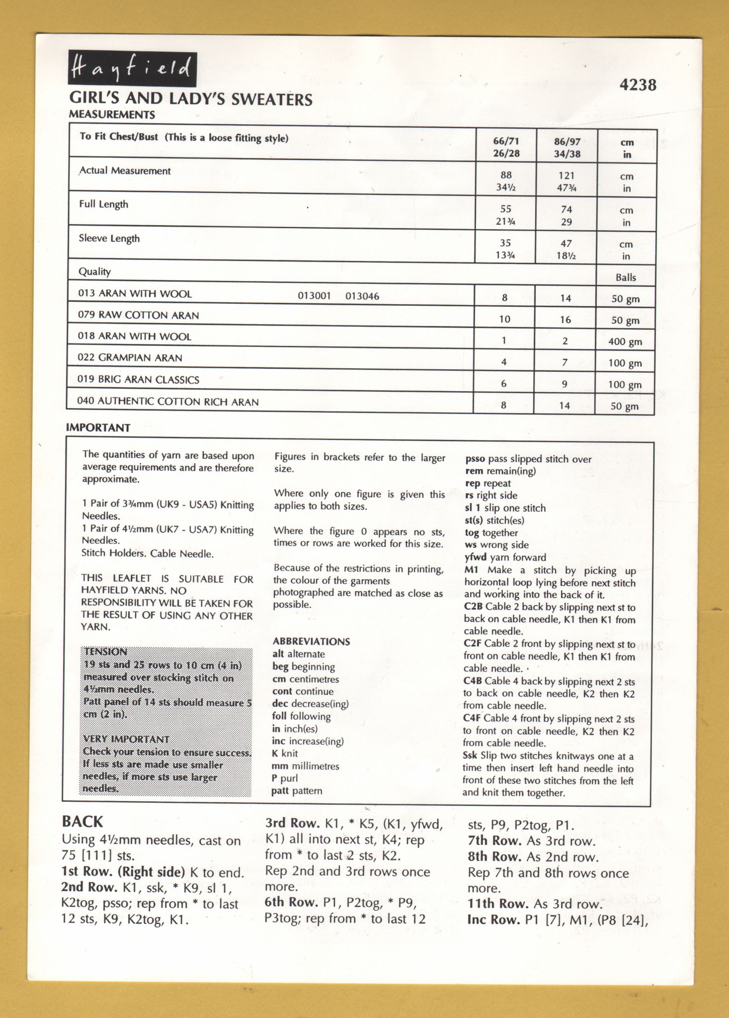 Tags: Hayfield, Aran, 26-38", No.4283, Girl`s, Lady`s Sweater:Knitting Pattern