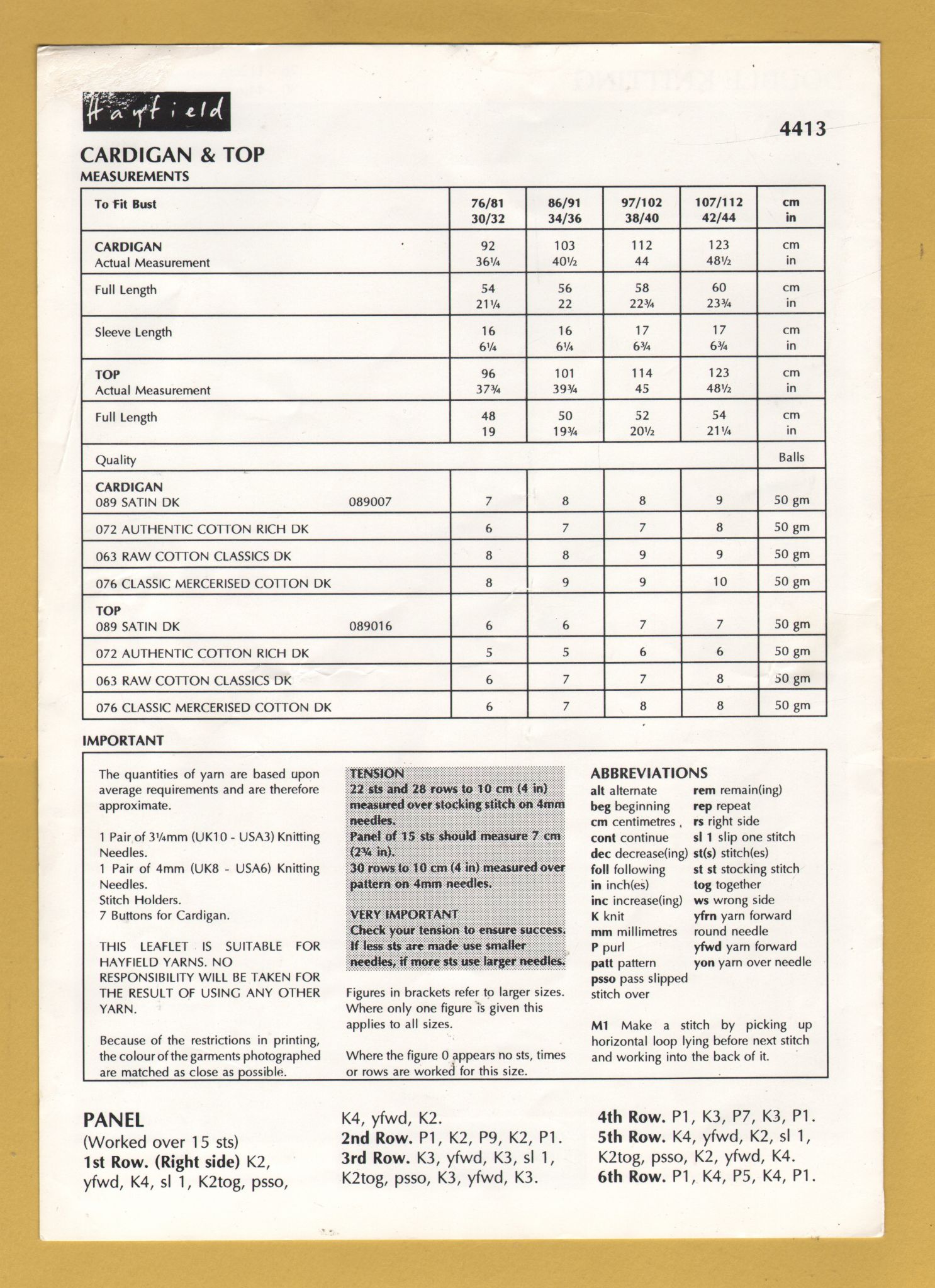 Hayfield - Double Knitting - 30-44" (76-112cm) - Design No.4413 - Cardigan and Top - Knitting Pattern Hayfield - Double Knitting - 30-44" (76-112cm) - Design No.4413 - Cardigan and Top - Knitting Pattern