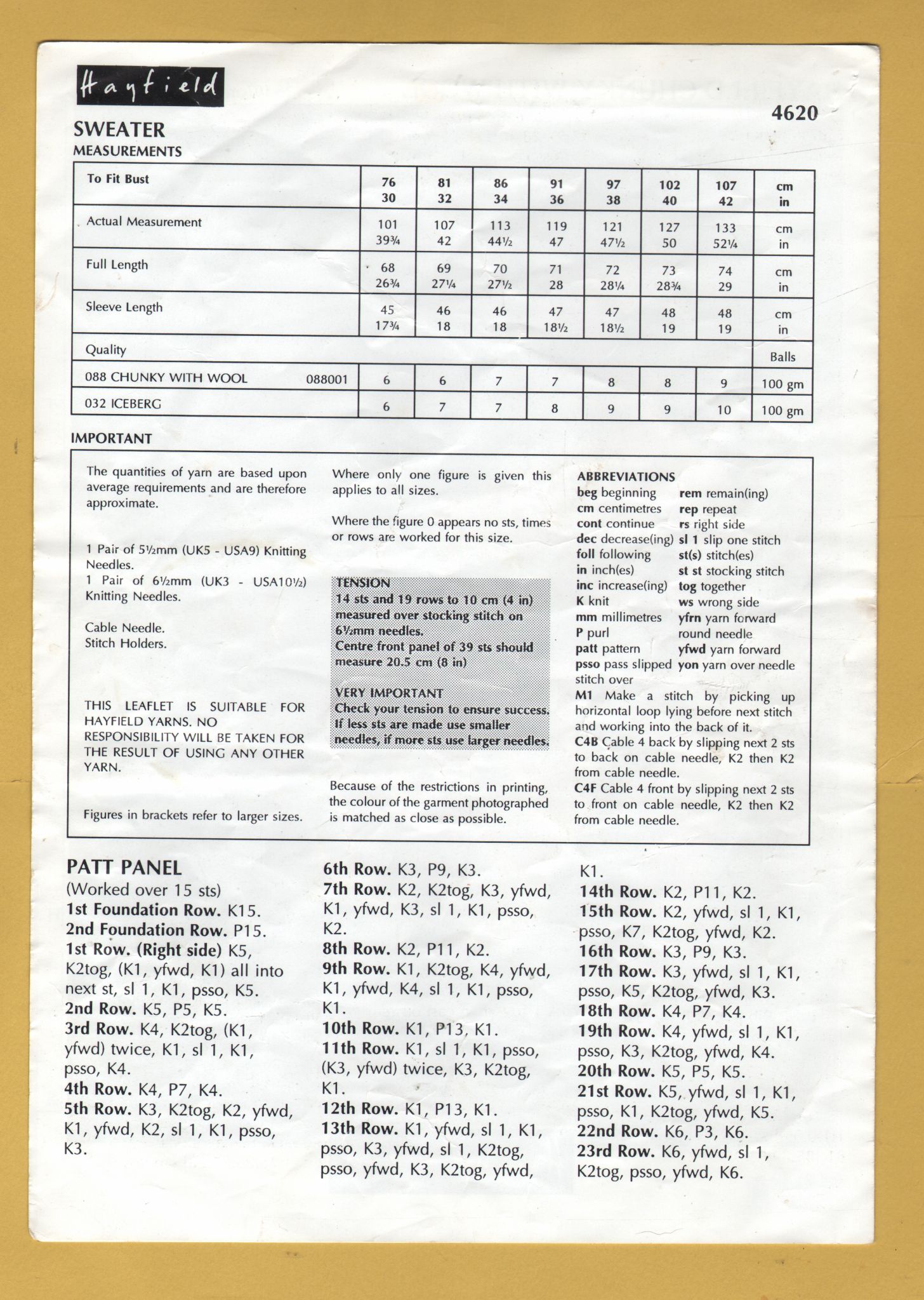 Tags: Hayfield, Chunky with Wool, 30-42", No.4620, Sweater:Knitting Pattern