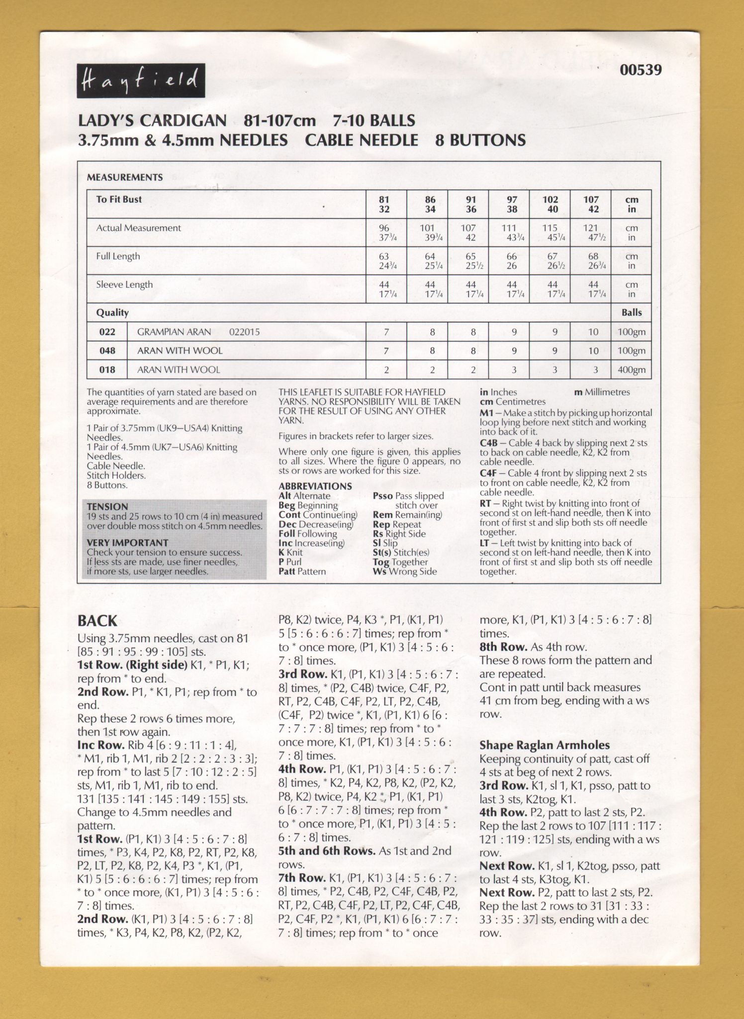 Tags: Hayfield, Aran, 32-42", No.00539, Lady`s Cardigan:Knitting Pattern