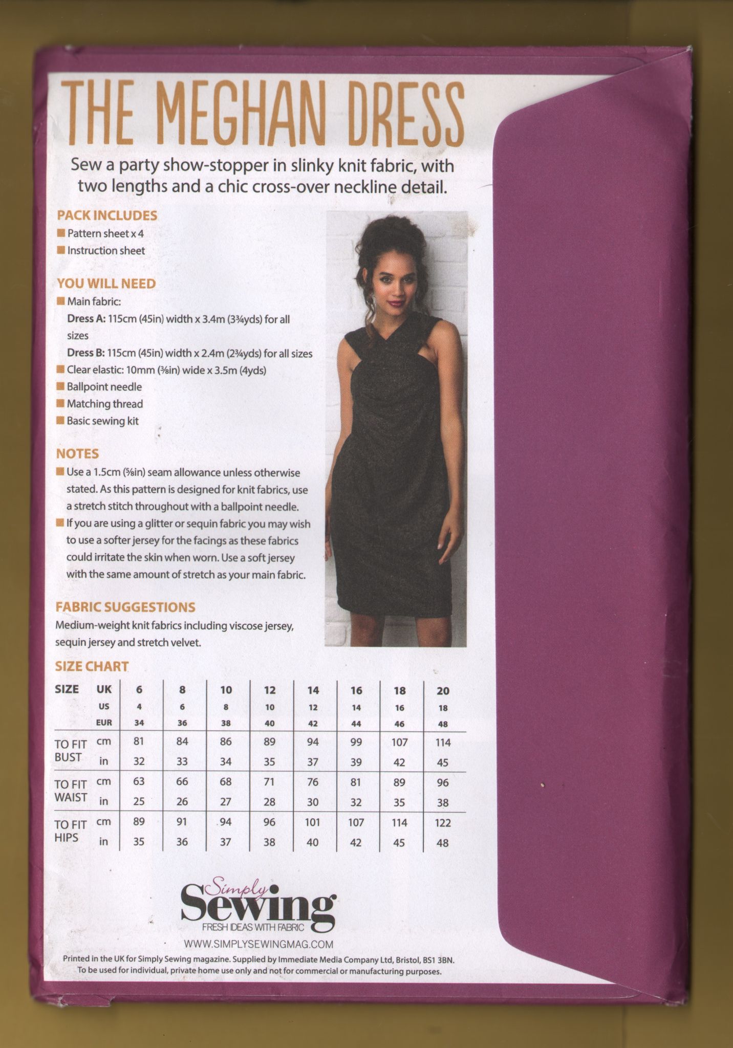 Simply Sewing - `THE MEGHAN DRESS` - UK Sizes 6-20 - `...cross-over neckline with two ways to wear` - Published by Simply Sewing Magazine Simply Sewing - `THE MEGHAN DRESS` - UK Sizes 6-20 - `...cross-over neckline with two ways to wear` - Published by Simply Sewing Magazine