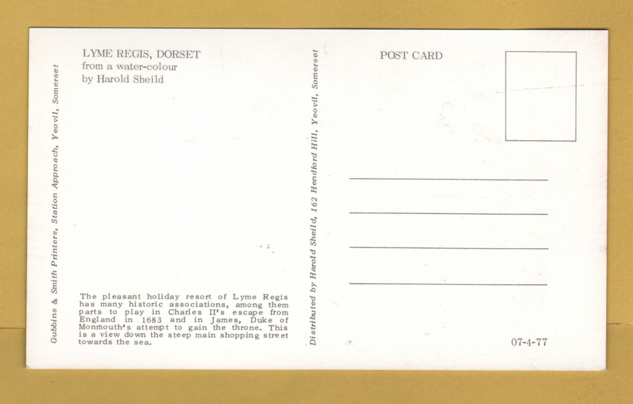 Tags: Lyme Regis, Dorset, Harold Sheild:Unused, Harold Sheild Postcard.