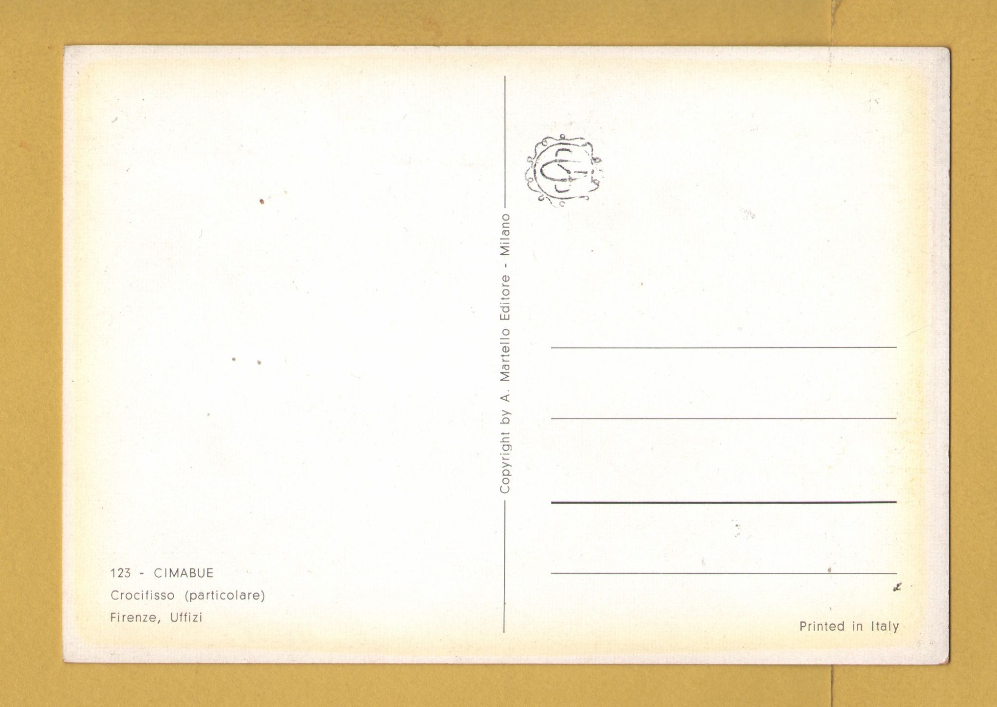 `Florence, Uffizi Gallery - Crucifix (detail) by Cimabue` - Postally Unused - A.Martello Postcard. `Florence, Uffizi Gallery - Crucifix (detail) by Cimabue` - Postally Unused - A.Martello Postcard.