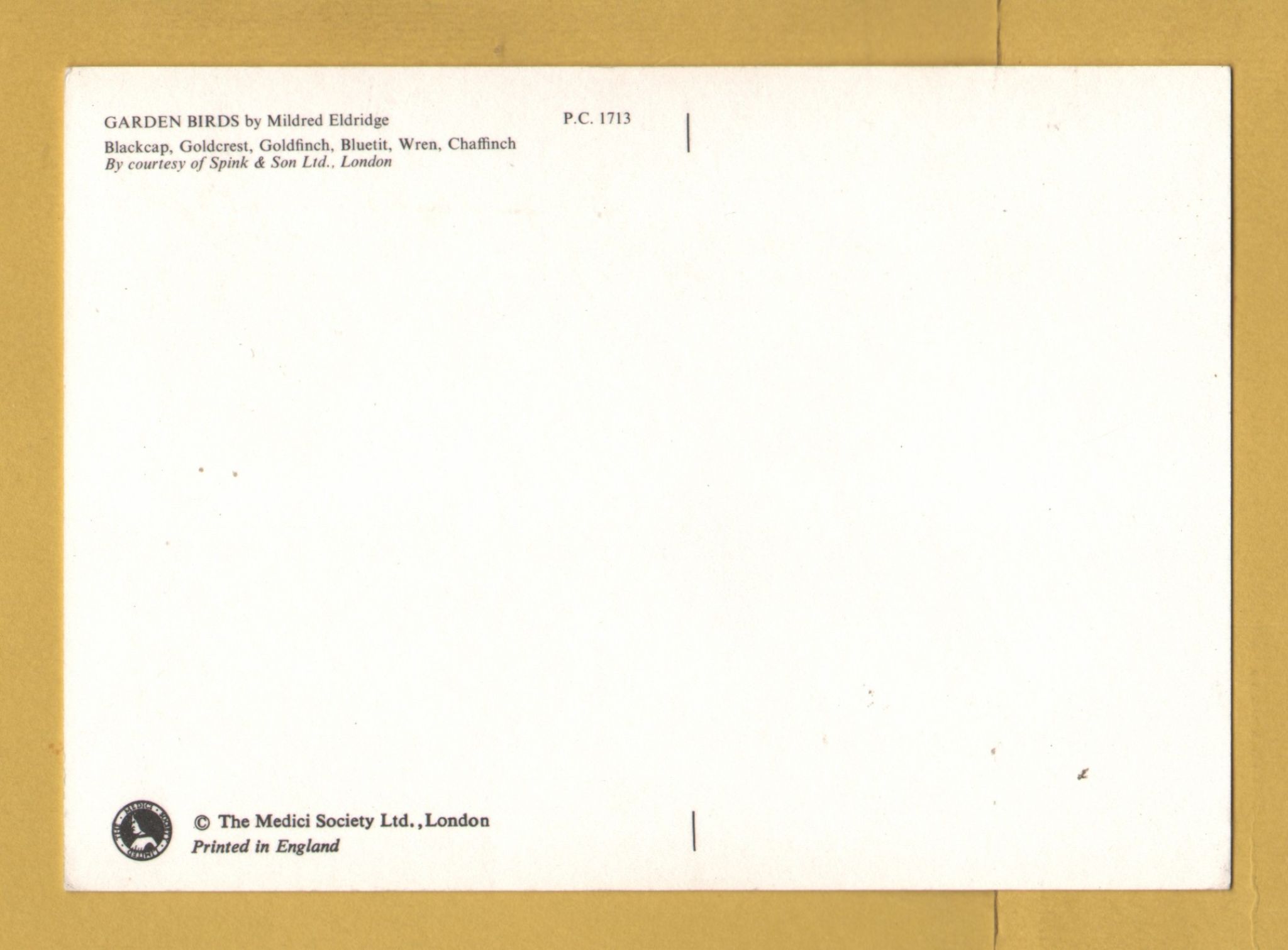 Tags: Garden Birds, Mildred Eldridge:Unused, Medici Society Postcard.
