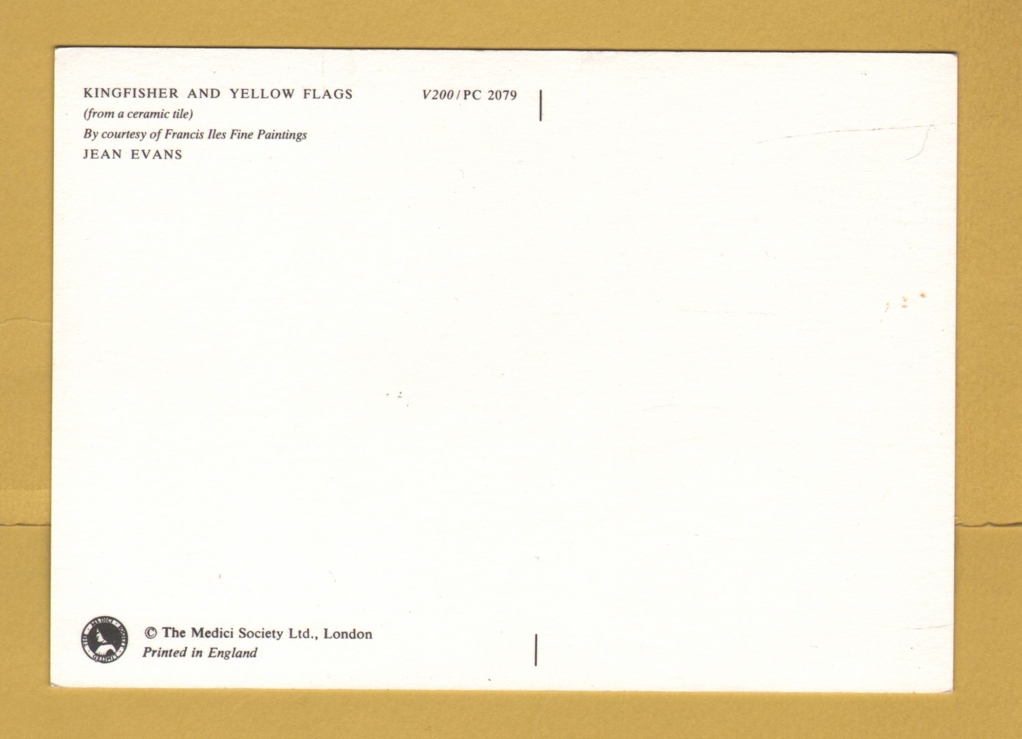 Tags: Kingfisher and Yellow Flags, Jean Evans:Unused, Medici Society Postcard.