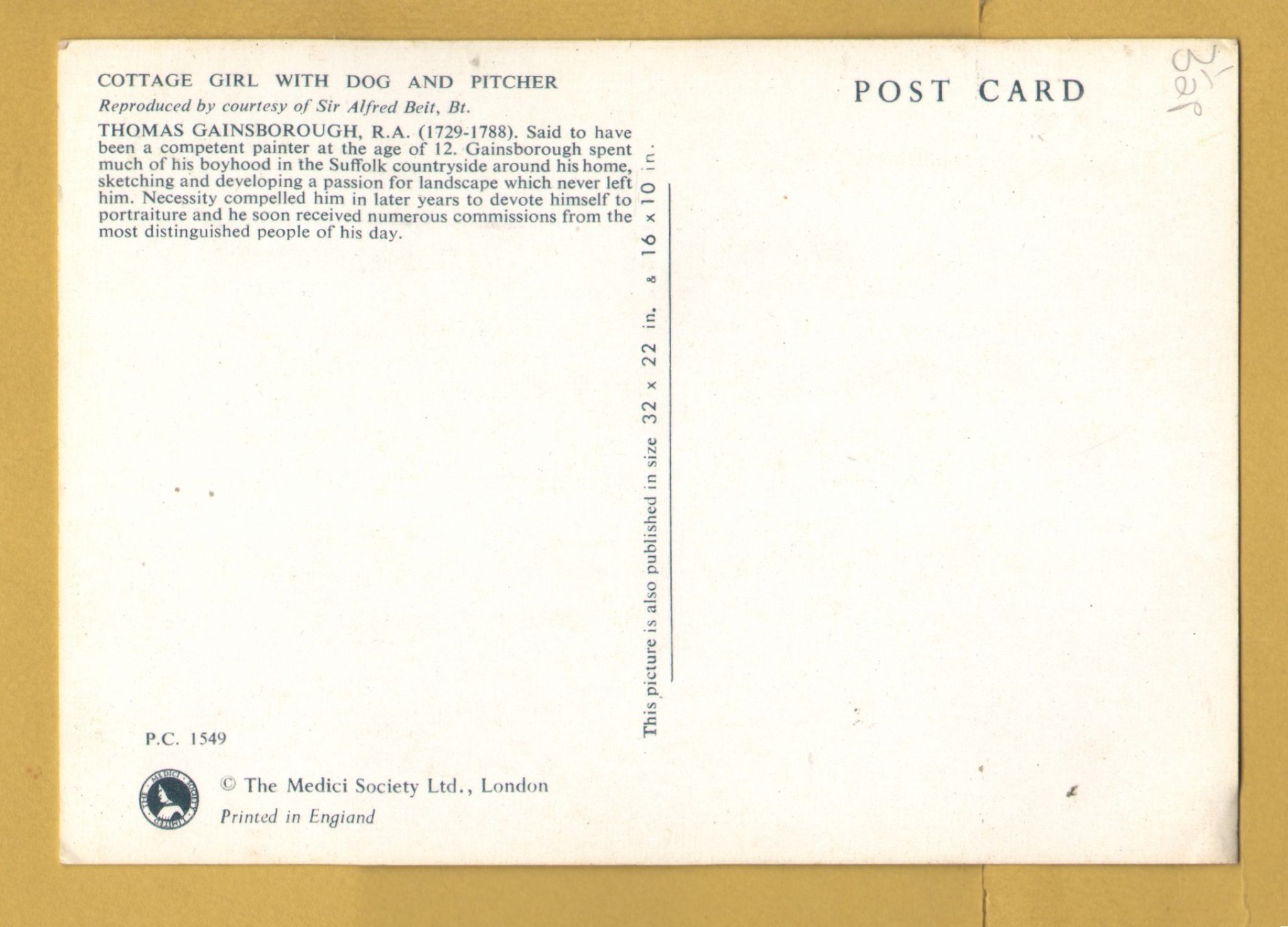 Tags: Cottage Girl with Dog and Pitcher, Thomas Gainsborough:Unused, Medici Society Postcard.