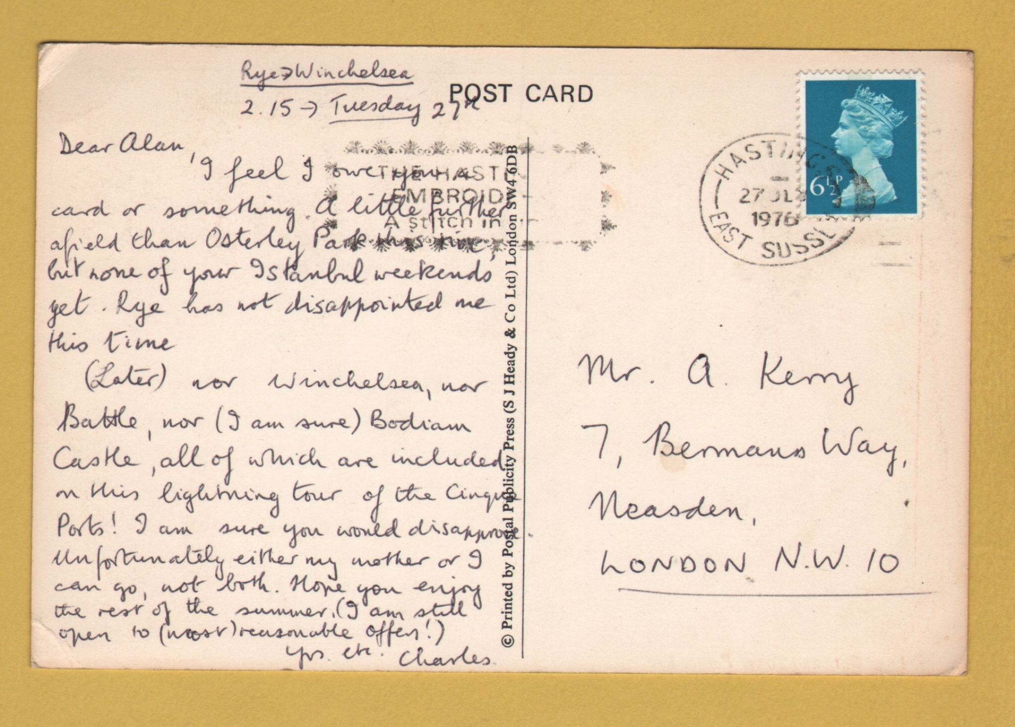 `Land Gate Tower Forge, Rye by S.J.Heady` - Postally Used-1976 - S.J.Heady & Co. Postcard.