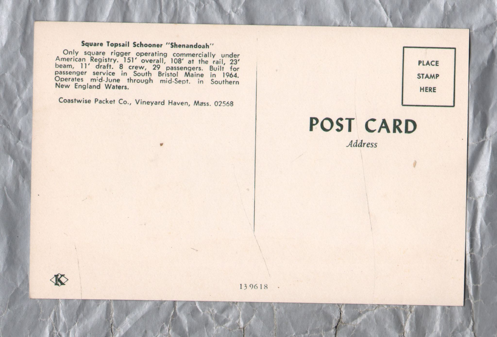 `Square Topsail Schooner "Shenandoah"` - Postally Unused - Coastwise Packet Co. Postcard `Square Topsail Schooner "Shenandoah"` - Postally Unused - Coastwise Packet Co. Postcard