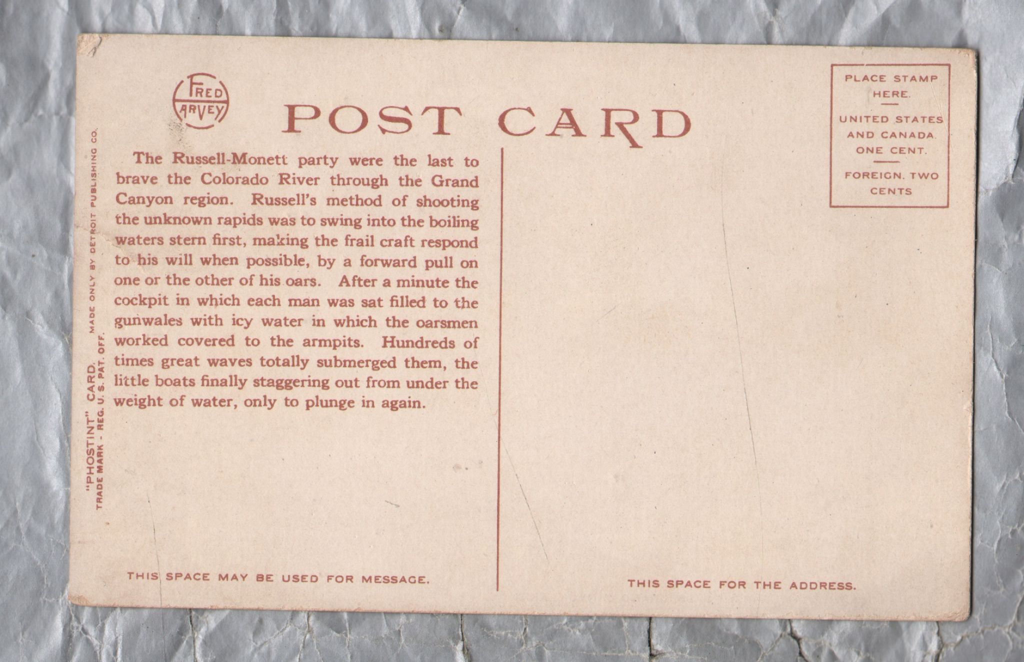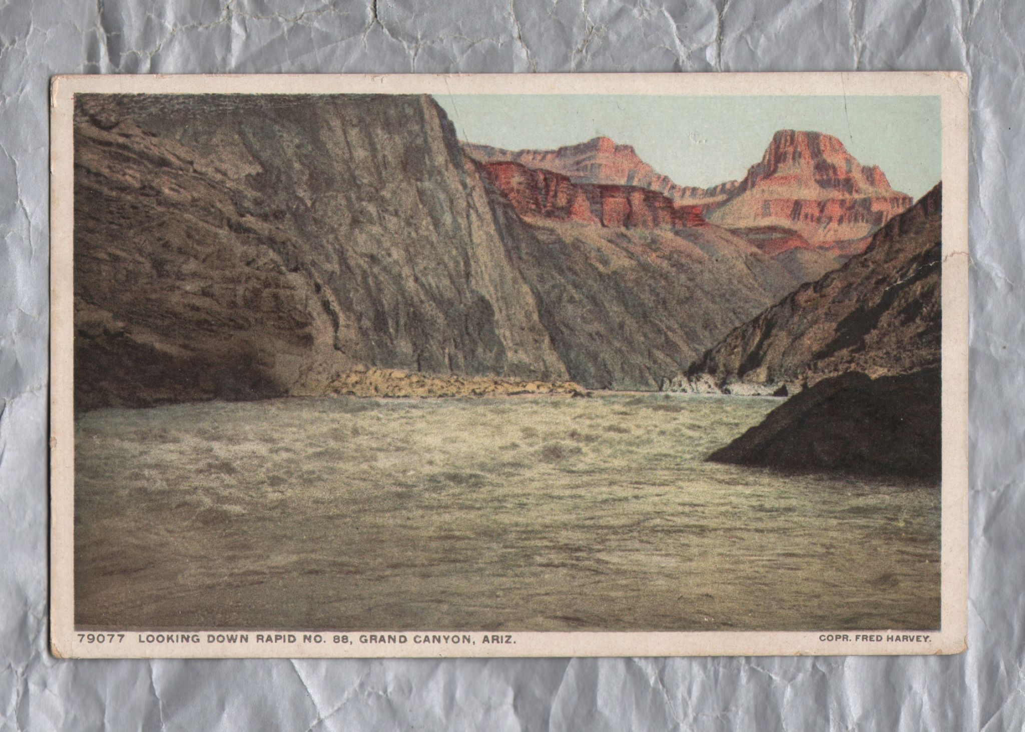 `79077-Looking Down Rapid No.88, Grand Canyon, Ariz` - Info Postcard - Postally Unused - Fred Harvey Postcard `79077-Looking Down Rapid No.88, Grand Canyon, Ariz` - Info Postcard - Postally Unused - Fred Harvey Postcard