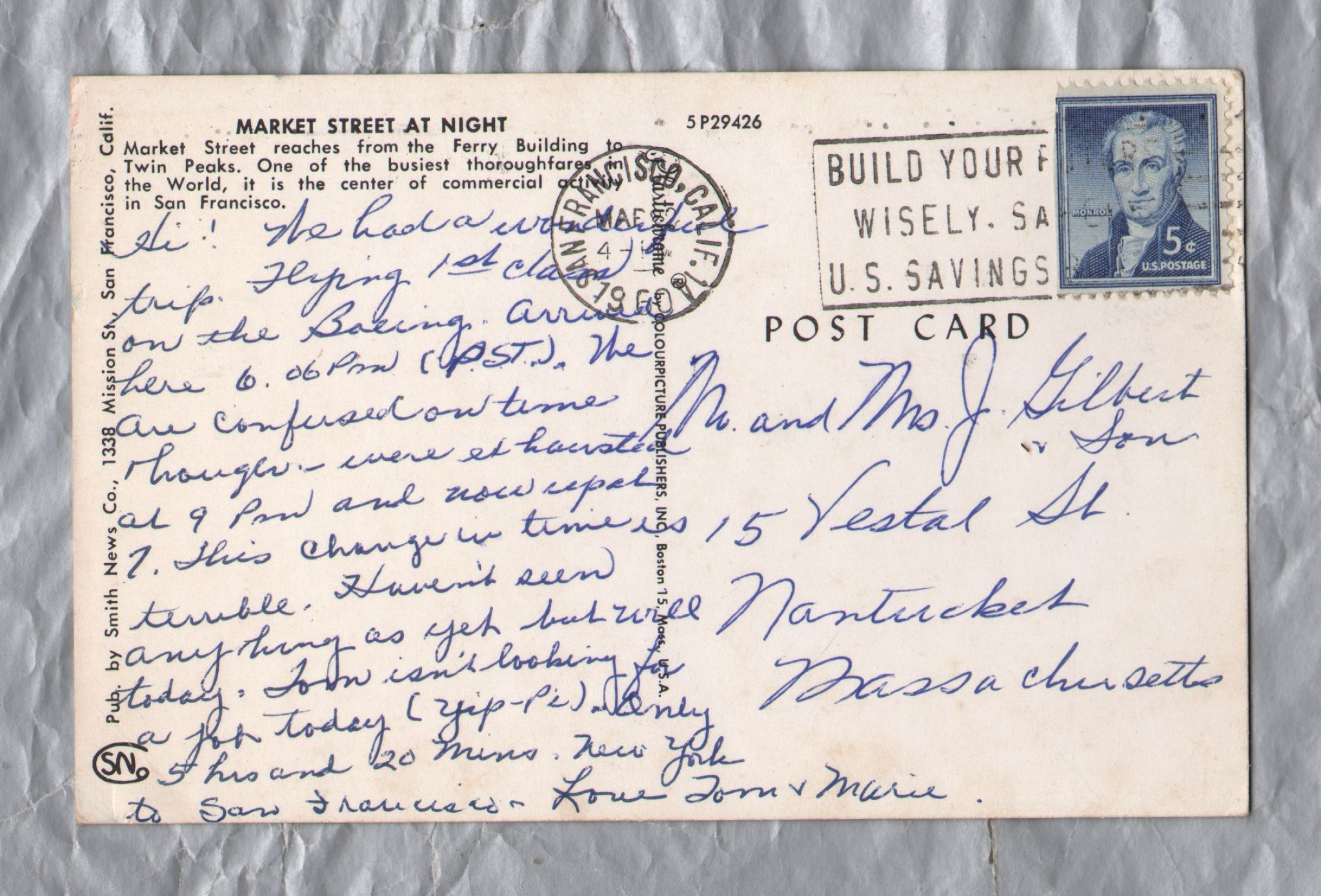 Tags: Market Street At Night, San Francisco, Postally Used, March 22 1960, Postmark, Slogan, Smith News Co, Postcard