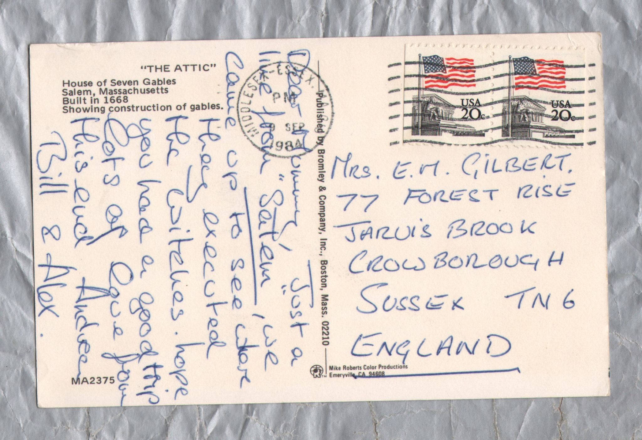 Tags: THE ATTIC, House of Seven Gables, Postally Used, Middlesex-Essex, 1984, Bromley & Company Postcard