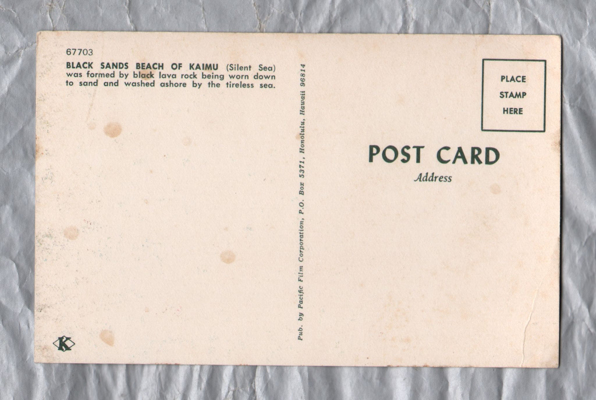 Tags: Black Sands Beach Of Kaimu, Postally Unused, Pacific Film, Corporation, Postcard