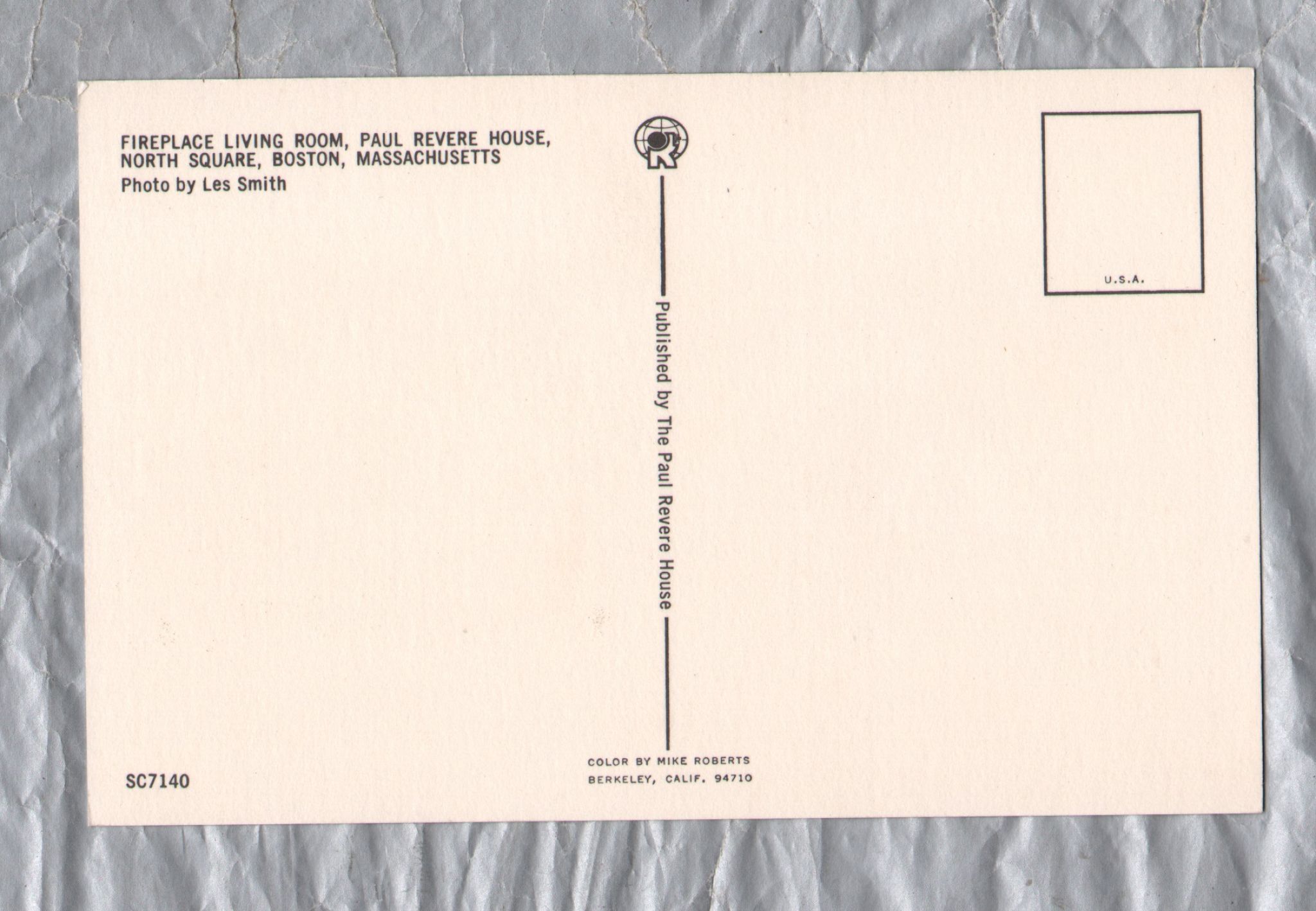 Tags: Fireplace Living Room, Paul Revere House, North Square, Boston, Postally Unused, Postcard