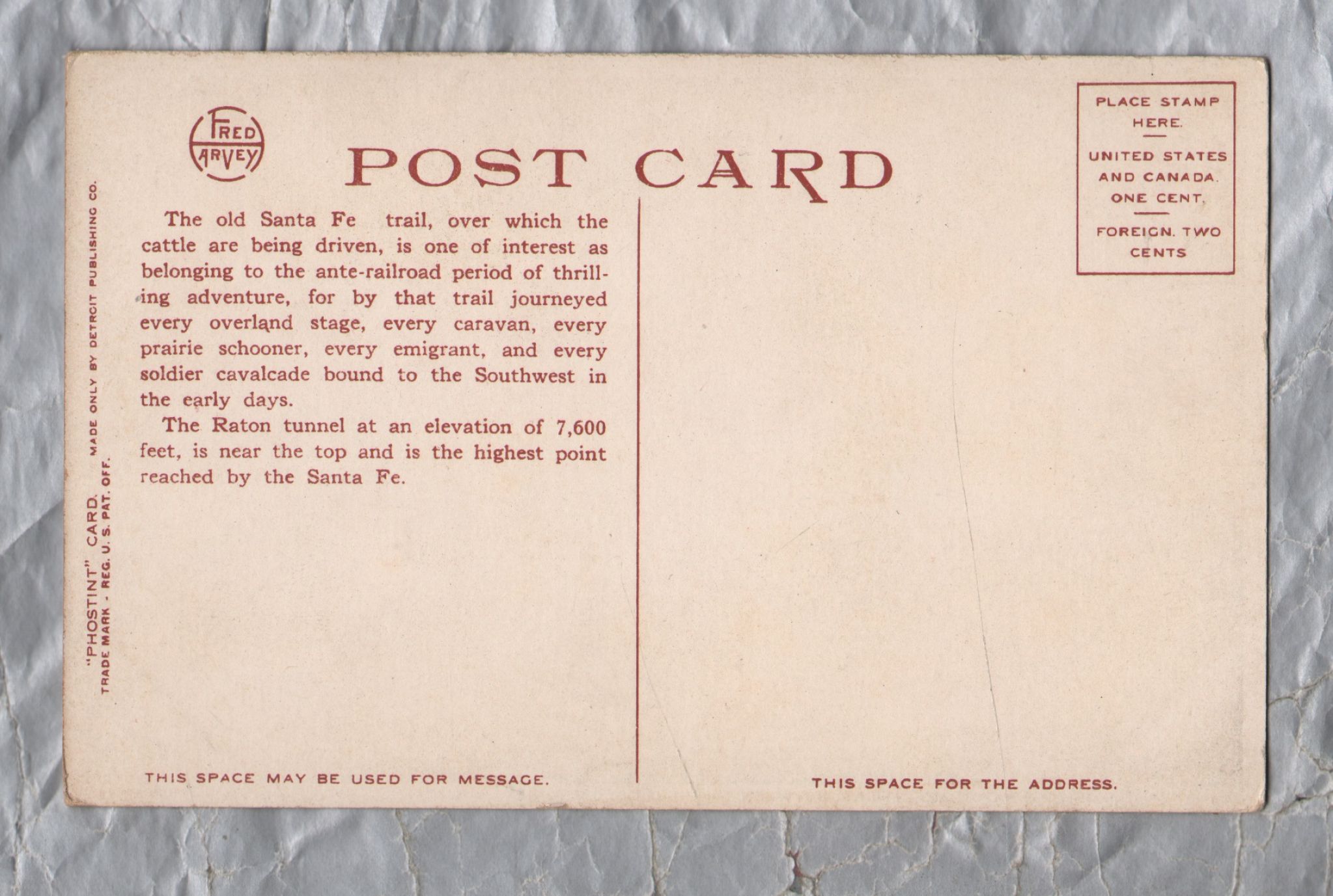 `14842 Cattle Drive In Raton Mountains, Between Trinidad, Colo And Raton, N.M.` - Postally Unused - Fred Harvey Postcard
