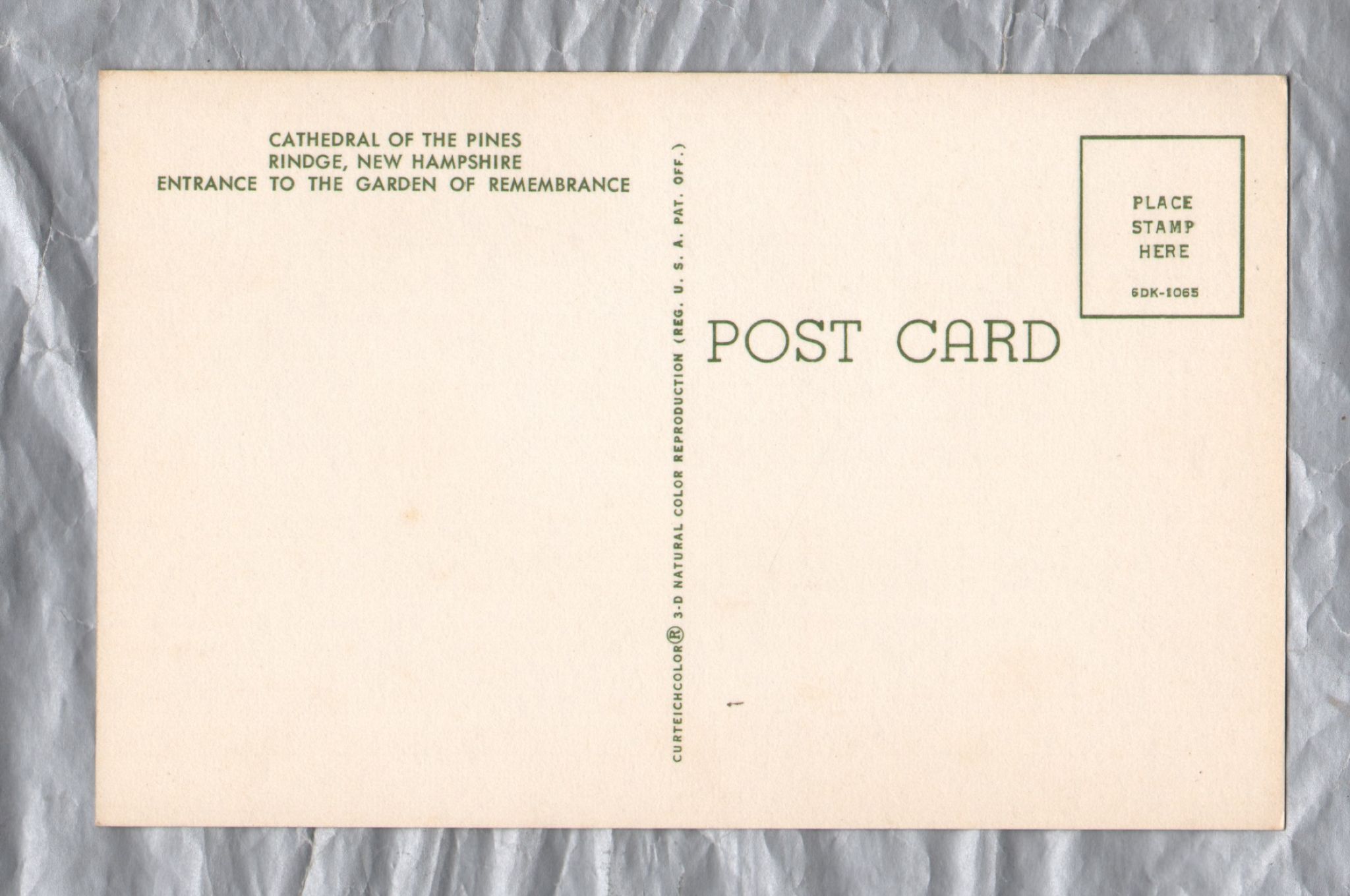 Tags: Cathedral Of The Pines, Rindge, New Hampshire, Entance, Garden Of Remembrance, Postally Unused, Curteichcolor Postcard