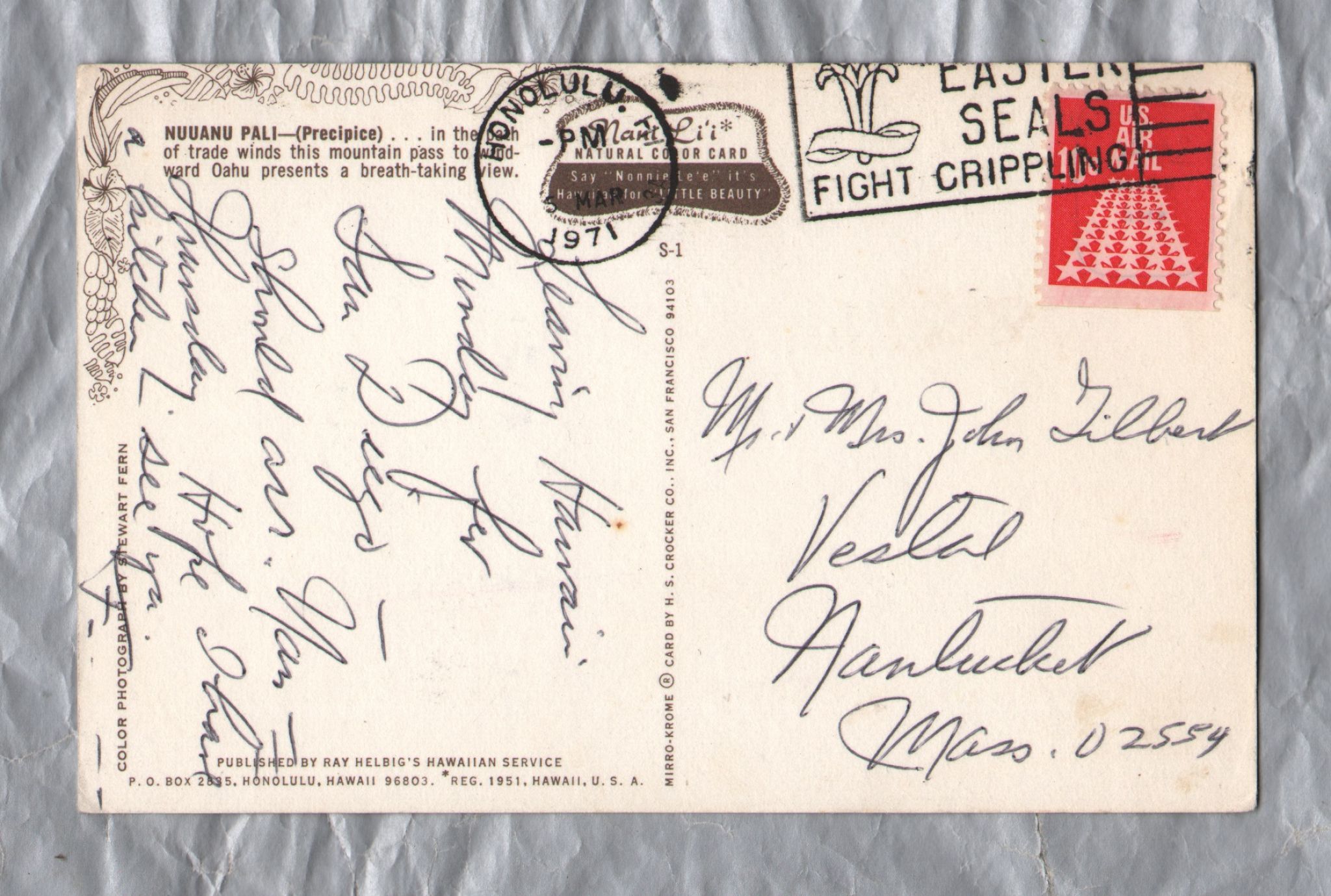 `Nuuanu Pali-(Precipice)` - Postally Used - Honolulu 1971 Postmark - Ray Helbig`s Hawaiian Service Postcard `Nuuanu Pali-(Precipice)` - Postally Used - Honolulu 1971 Postmark - Ray Helbig`s Hawaiian Service Postcard