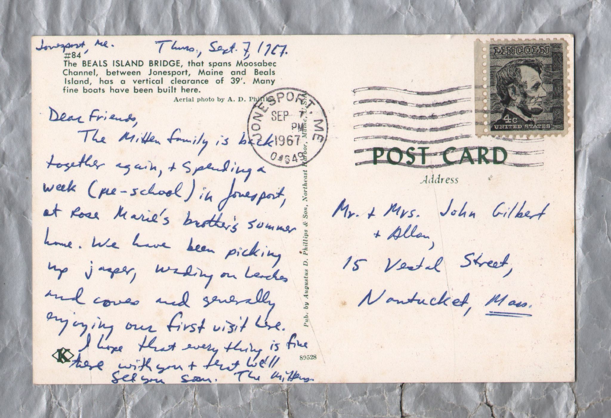 `The Beals Island Bridge` - Postally Used - Jonesport, ME September 7 1967 Postmark - Augustus D.Phillips & Sons Postcard