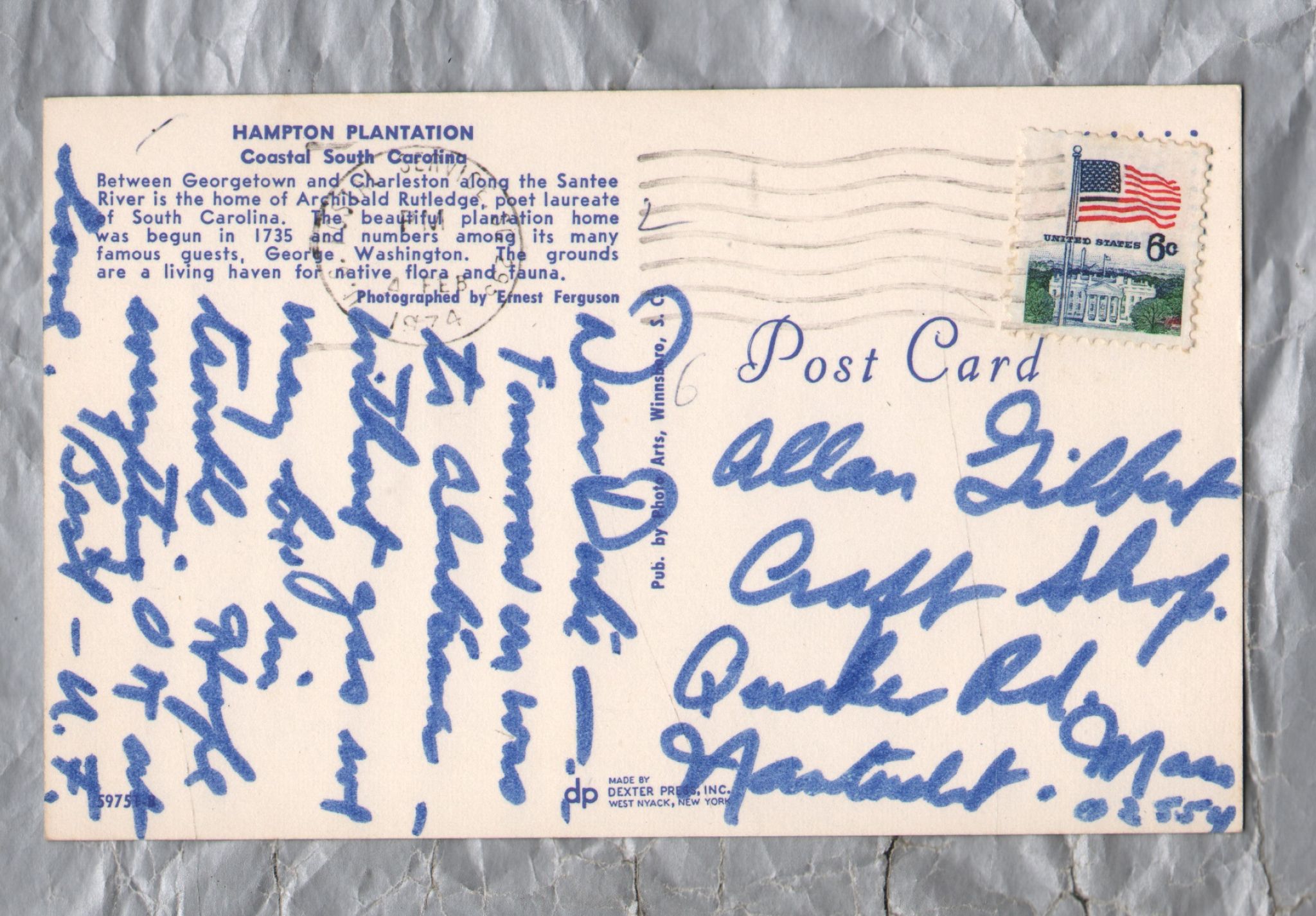 `Hampton Plantation, Coastal, South Carolina` - Postally Used - U.S. Postal Service SC February 4 1974 - Photo Arts Postcard