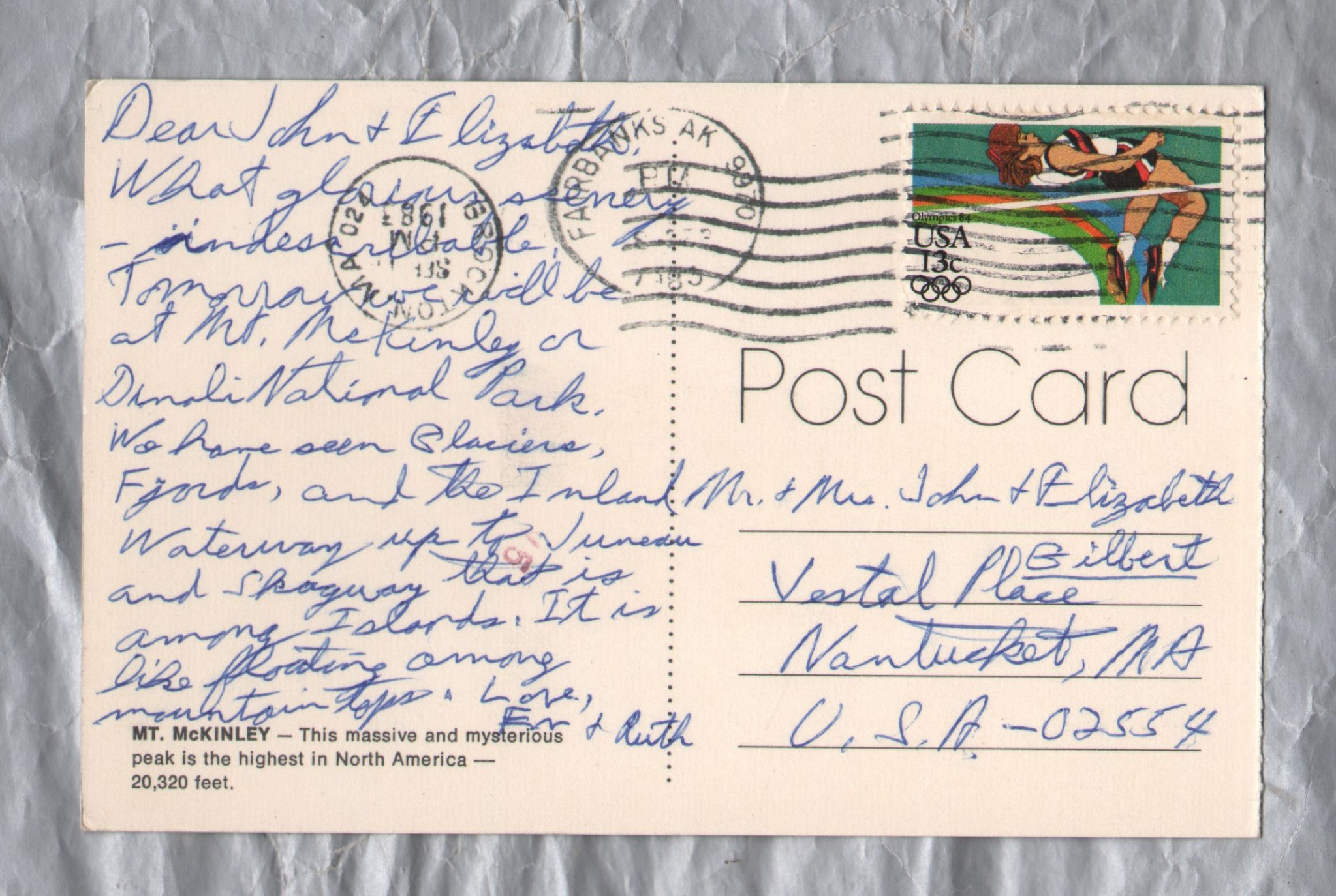 Tags: Mt McKinley, Postally Used, Fairbanks, 1983, Brockton MA, 1983, Unknown Producer