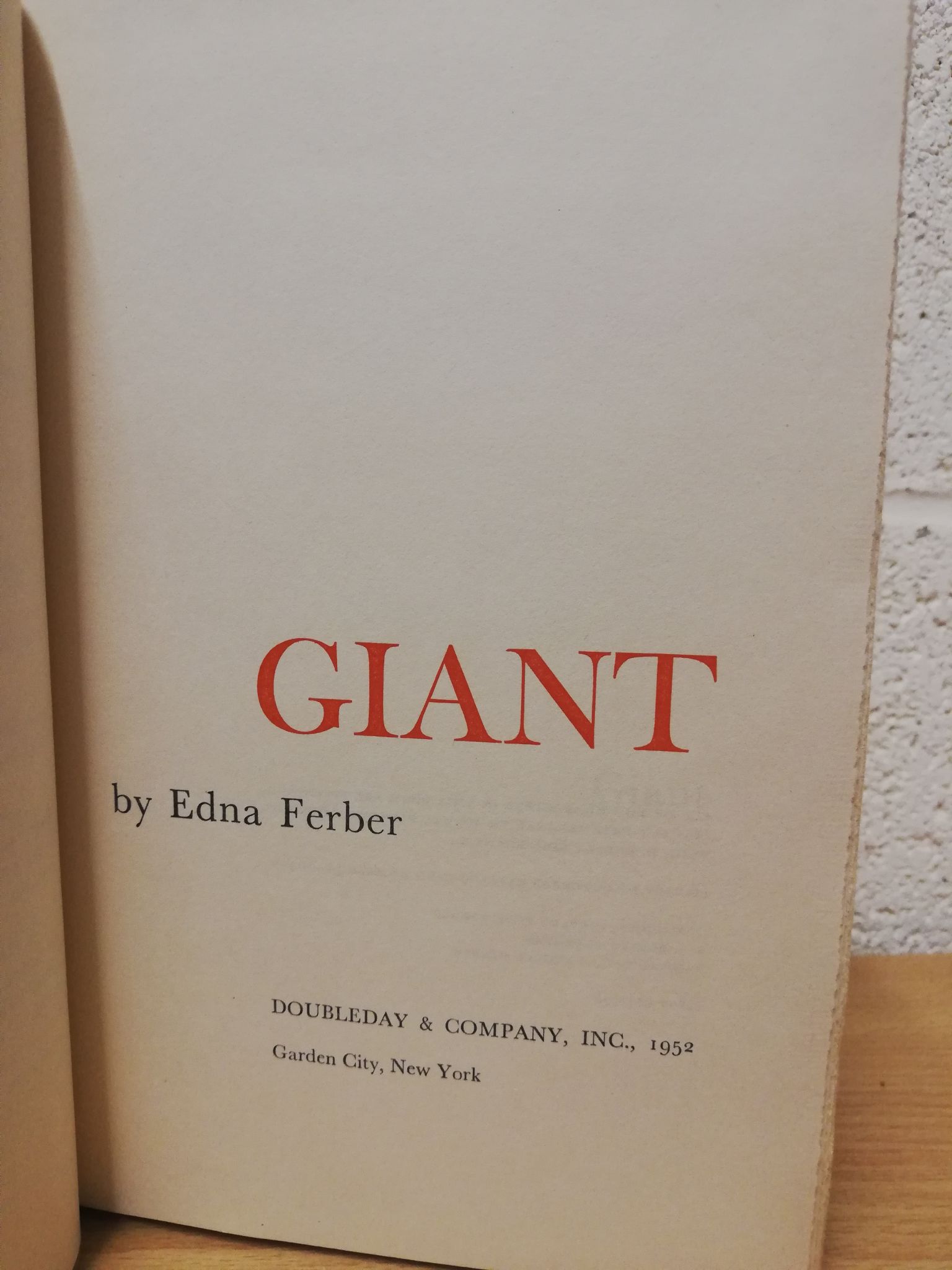 Tags: GIANT, Edna Ferber, 1st U.S Edition, 1st Print, Hbk, Doubleday, 1952